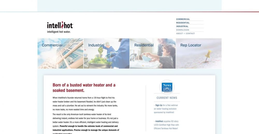 Intellihot creates one of the most efficient, tankless water heaters on the market today. Cybernautic® is one of the top Galesburg Web designers. Together, we worked on a vision to create a website to help Intellihot continue to envision a future of extraordinary efficiency, where not a watt or drop is wasted.