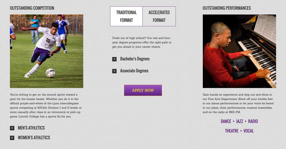 Lincoln College is a private, independent liberal arts institution offering associate, bachelor, and graduate degree options in multiple formats! Cybernautic® is one of the top custom web designers in Champaign, IL. Together, we worked on a vision to create a website to help Lincoln College's students excel.