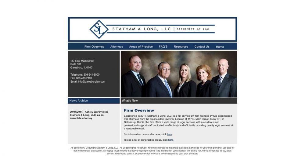 Statham & Long, LLC, is a full-service law firm offering a wide range of legal services. Cybernautic® is a top Galesburg web designer. We partnered to create a website that helped Statham & Long continue providing quality legal services at a reasonable cost!
